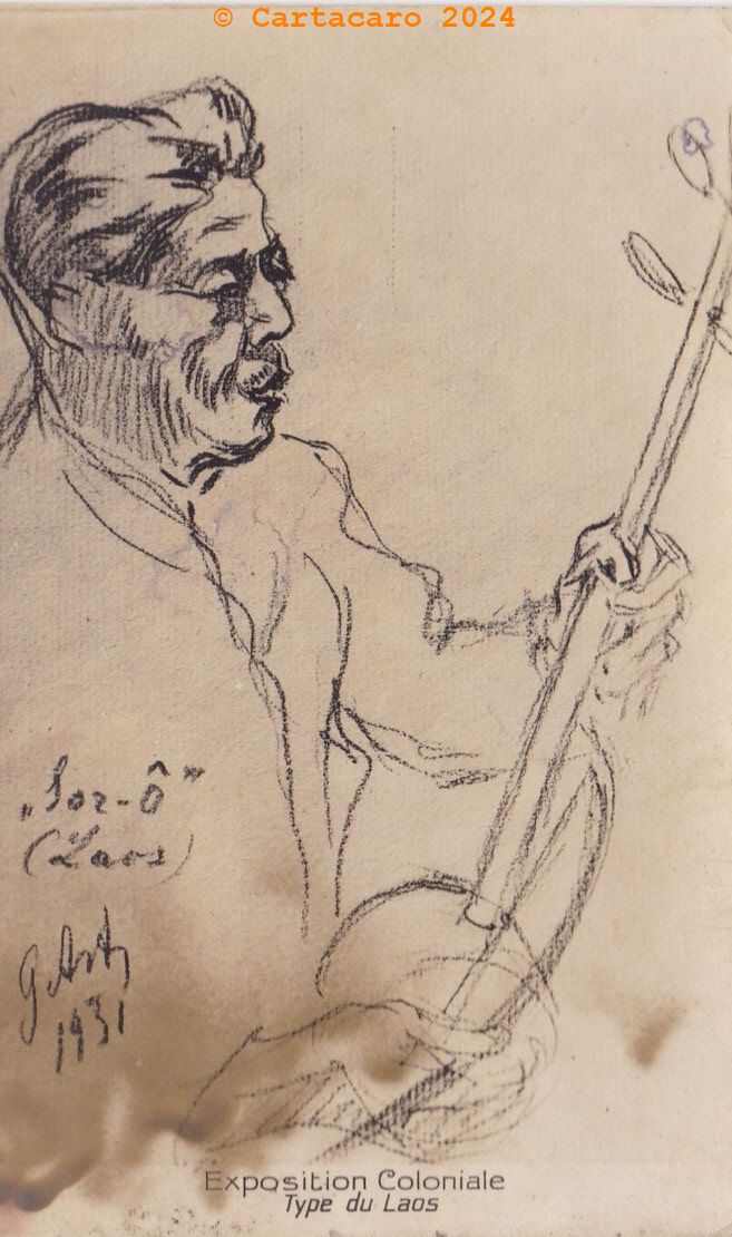 A draftsman named G Arxh illustrated the 1931 colonial exhibition. Postcards were published, and two of them below depict Laos.