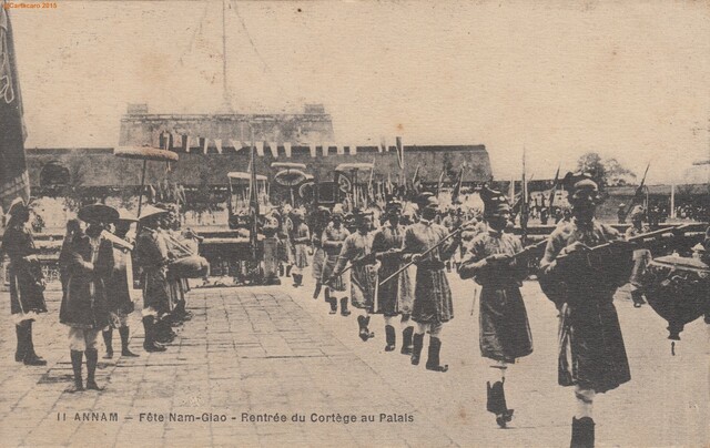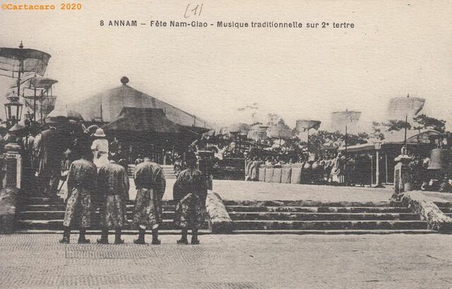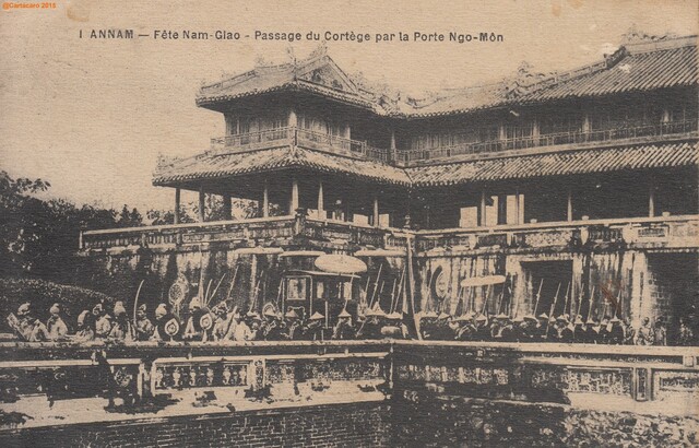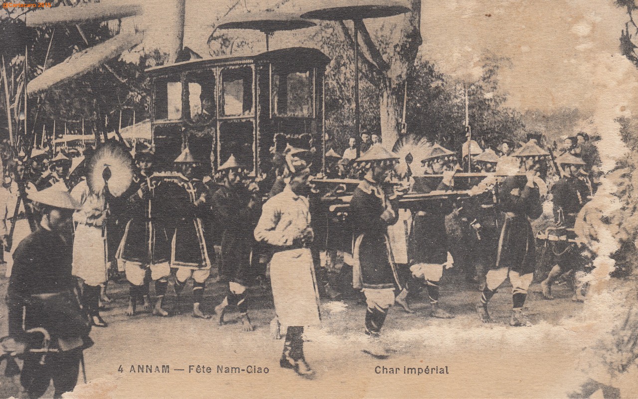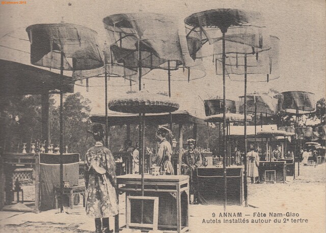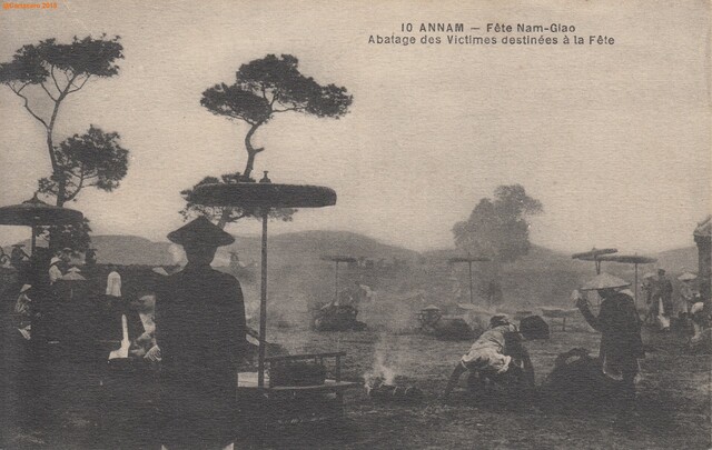 The Nam Giao, sacrifice to Heaven and Earth, which took place every three years, was undoubtedly the most important celebration of all those that took place at the court of Hué, both due to the splendor and majesty of the ceremonies and its highly symbolic significance : through this sacrifice, in fact, the sovereign periodically renewed in a way his union with the celestial powers that confirmed his ’mandate’.