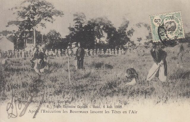 Après l’exécution les bourreaux jettent les têtes en l’air 6 août 1908