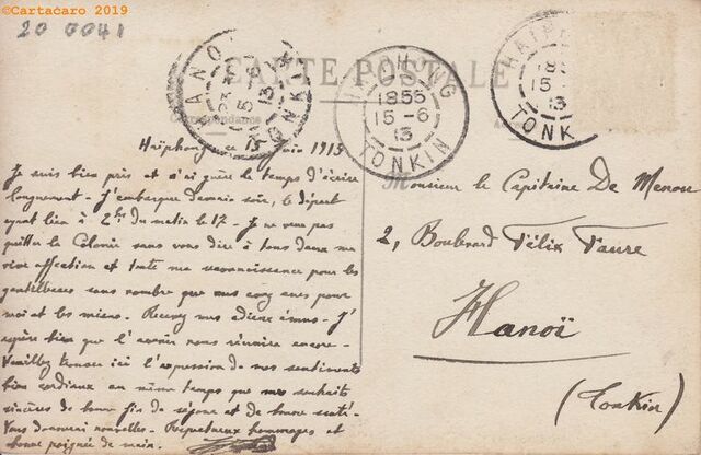 Cette carte écrite le 14 juin 1913 est une des dernière carte écrite par Louis Martin-Jarrand avant son départ pour la métropole.