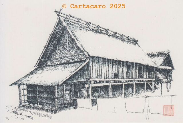 Two rural wooden houses on stilts.